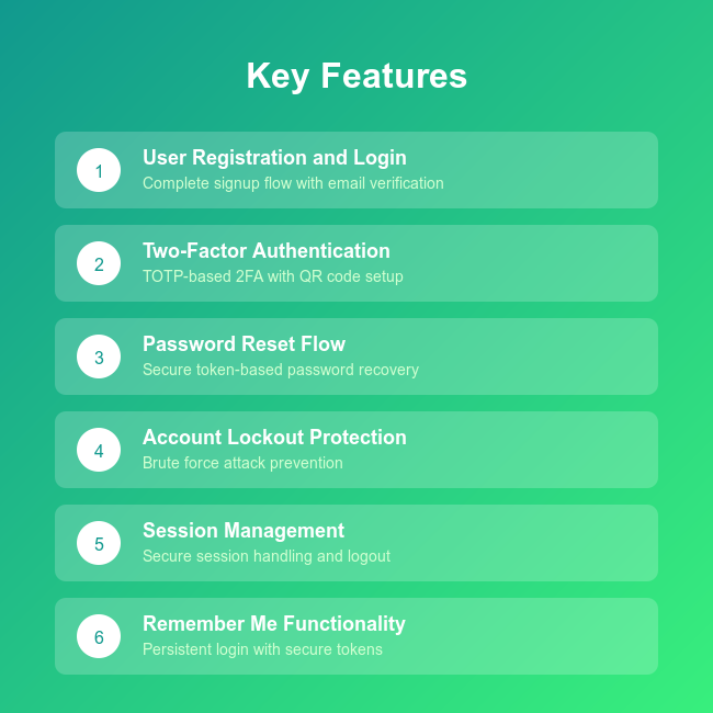Skip weeks of development and get a battle-tested authentication system with all the features modern web applications need.